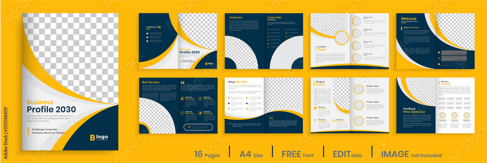 Tableau sur toile Orange business brochure template layout design, 16 page corporate brochure editable template layout, minimal business brochure template design