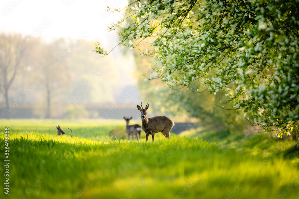 Tableau sur toile Rehe in der Morgensonne am Steinhorster Becken, Wilde Tiere, Wildlife, Delbrück,