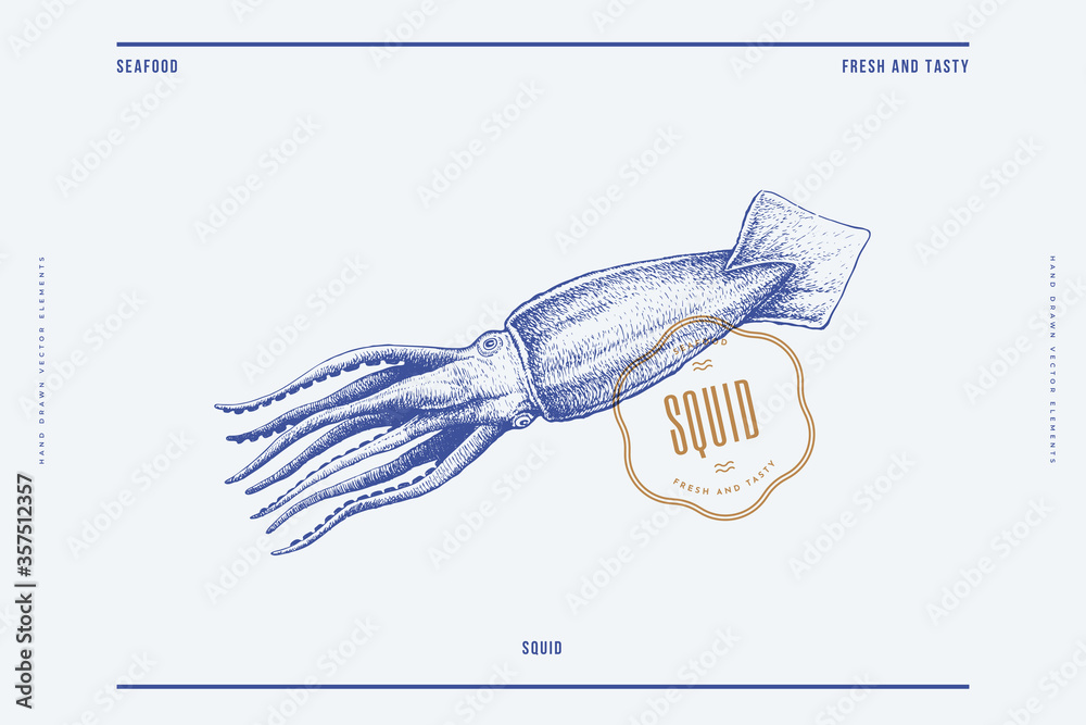 Tableau sur toile Hand-drawn image of a large squid on a light background