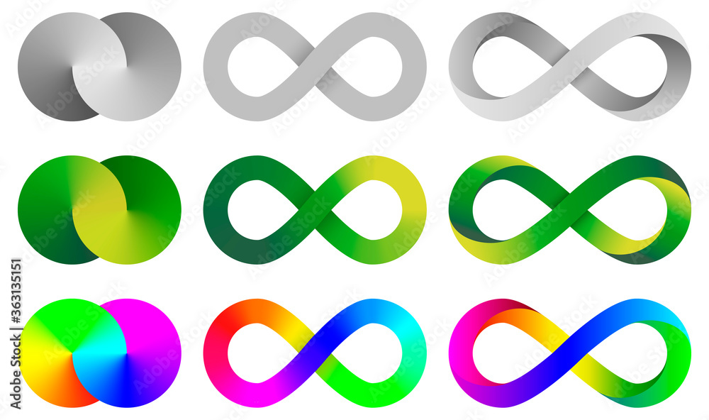 Tableau sur toile Colorful infinity signs. Abstract endless symbols collections.