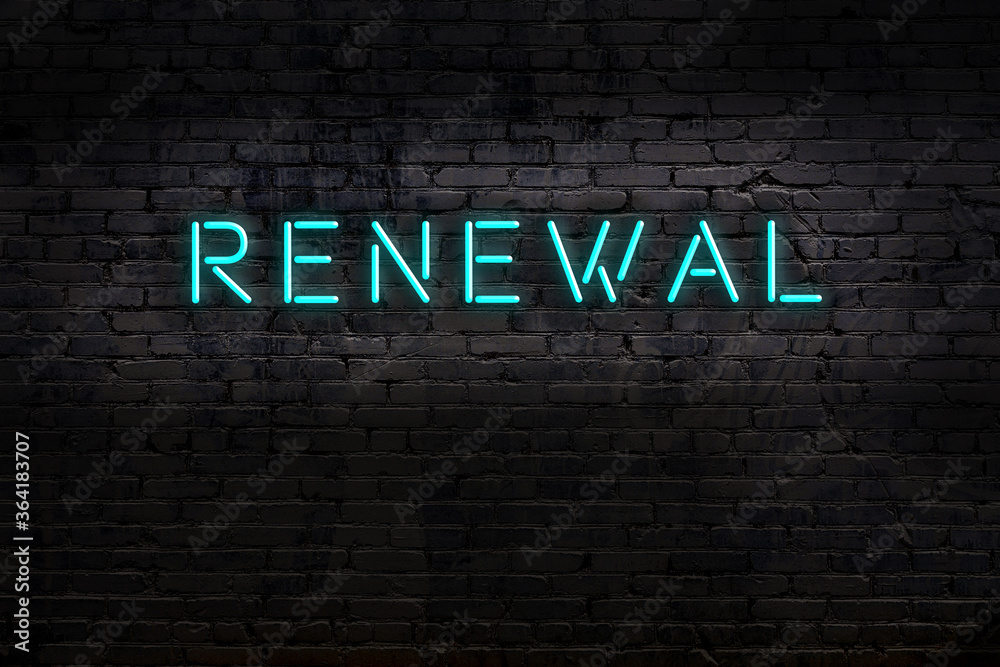 Tableau sur toile Night view of neon sign on brick wall with inscription renewal