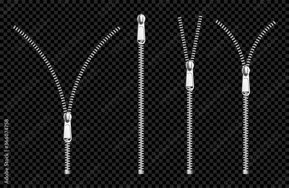 Tableau sur toile Metal zip fasteners, silver or steel zippers with puller, clothing hardware, app