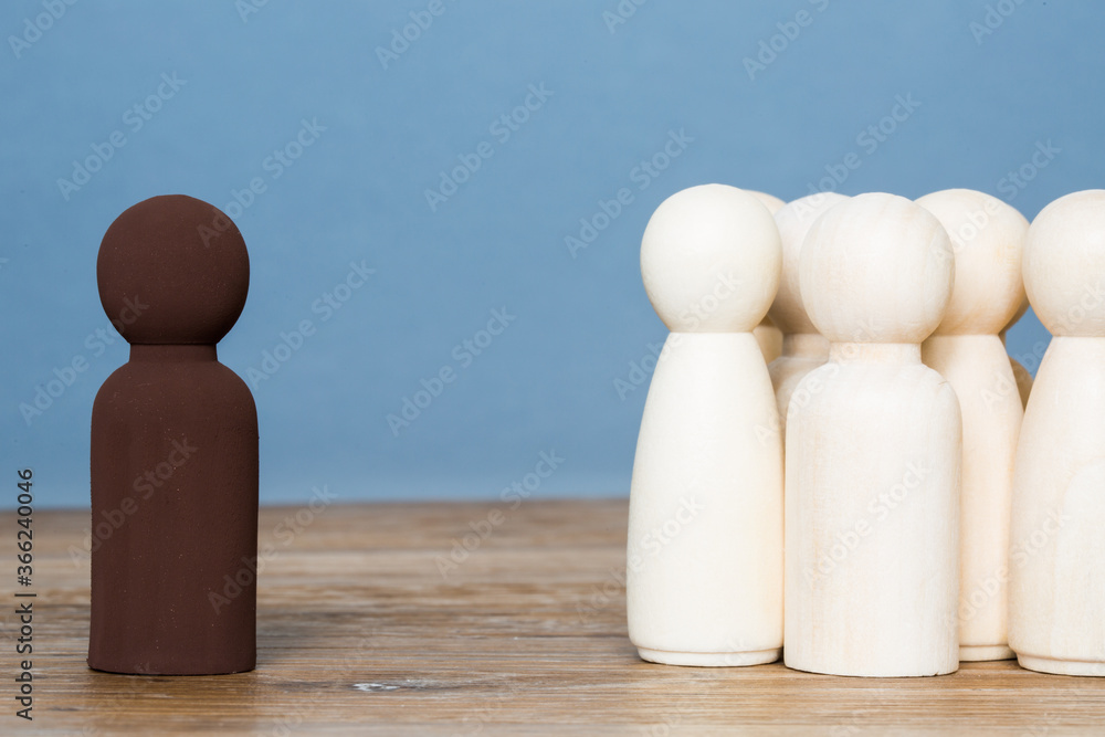 Tableau sur toile A black person segregated from a group of white people in a racial segregation o