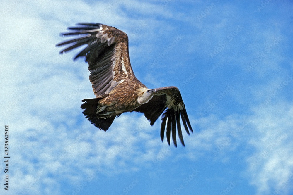 Tableau sur toile Ruppell's Vulture, gyps rueppelli, Adult in Flight against Blue Sky, Masai Mara