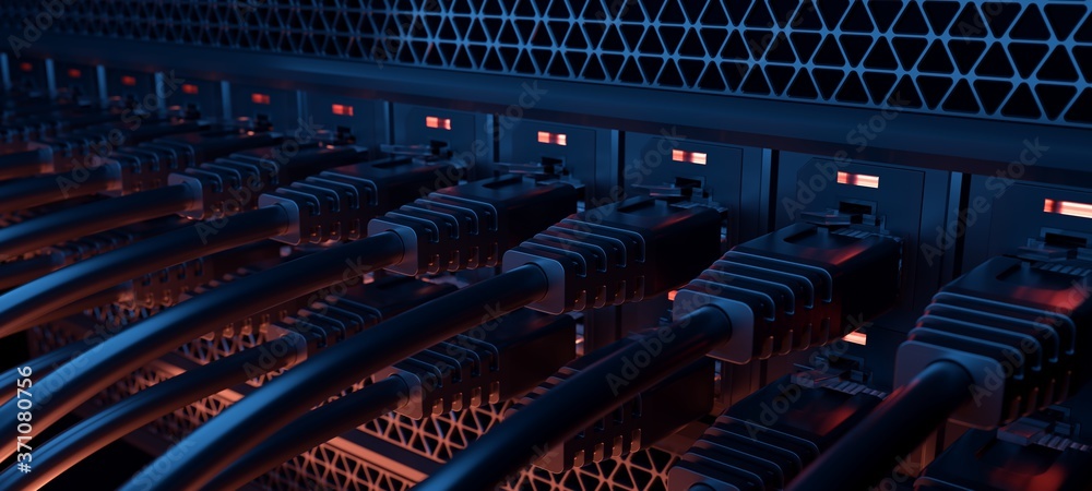 Tableau sur toile Closeup of the rear of a data center.