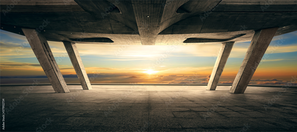 Tableau sur toile Modern rooftop balcony and sunrise sky view background