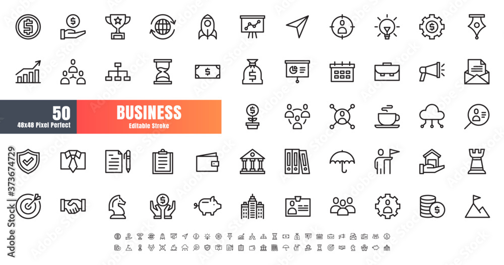 Tableau sur toile Vector of 50 Business and Financial Line Outline Icon Set