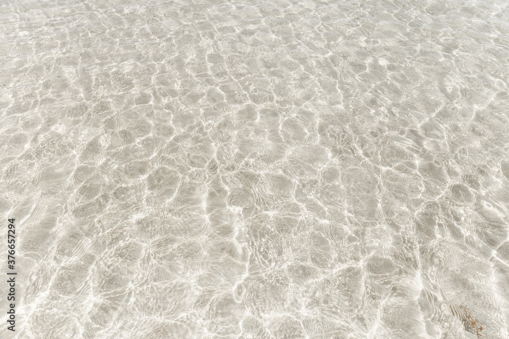 Tableau sur toile Top view surface of clear sea water reflections on shallow sandy beach