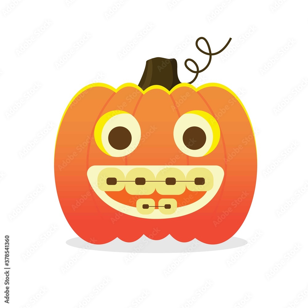 Tableau sur toile Large orange pumpkin with braces on a white background