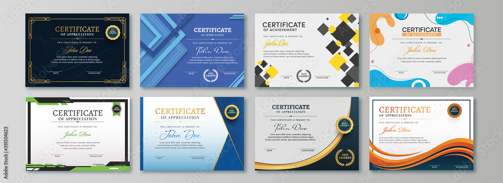 Tableau sur toile Appreciation & Achievement Certificate Template Design in Eight Options