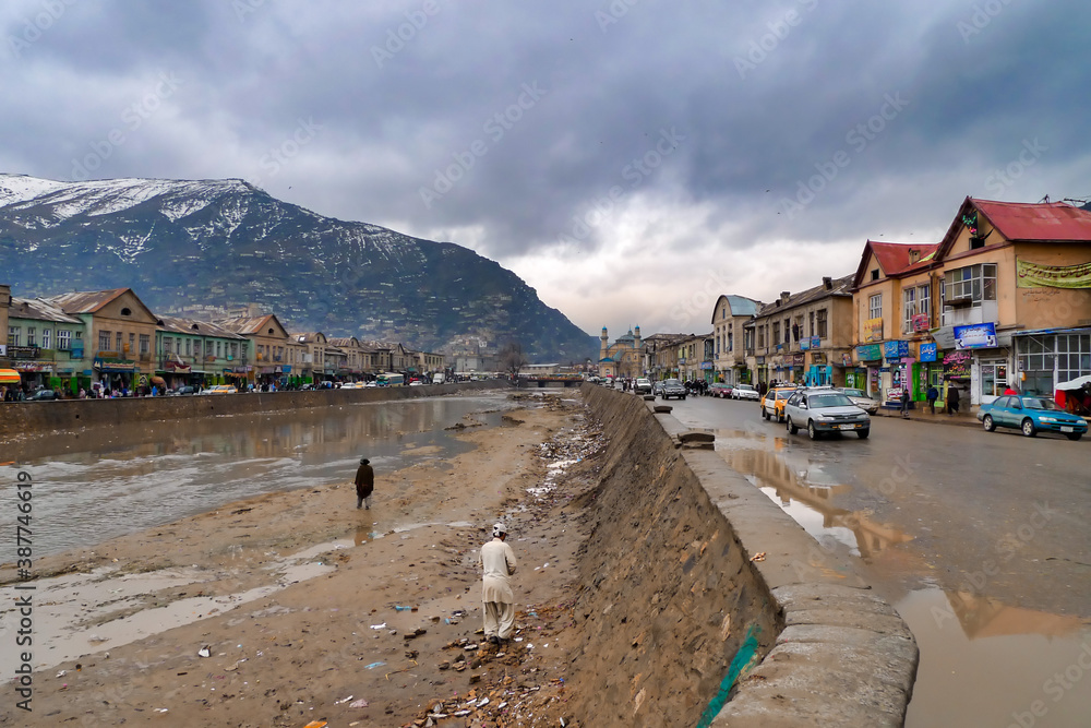 Tableau sur toile KABUL,AFGHANISTAN/MARCH 3, 2009: The Kabul river embankment in the city center
