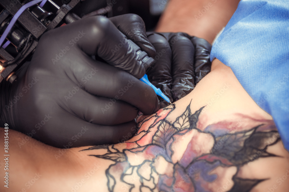 Tableau sur toile Professional tattoo artist formulates a tattoo the salon