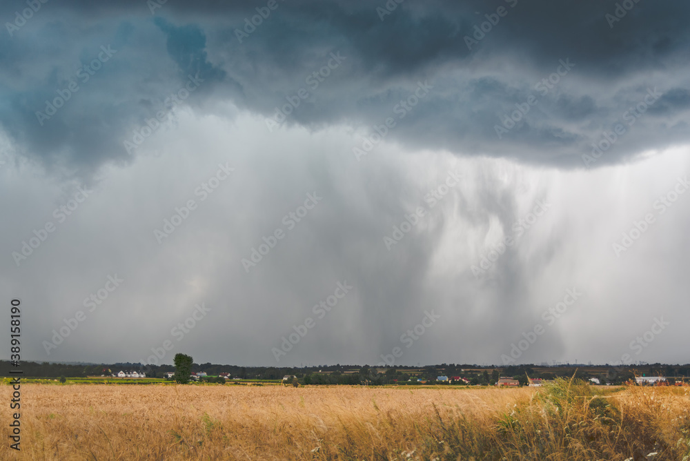 Tableau sur toile A huge storm cloud with a wall of rain in the countryside.