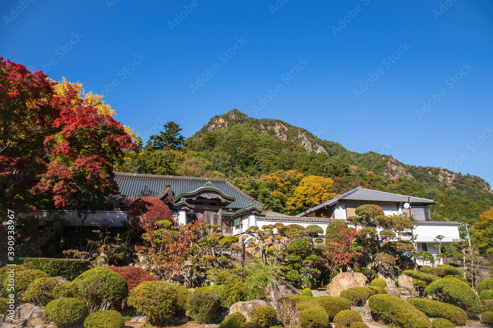 Tableau sur toile Autumn leaves and mountain at japanese temple Okuboji , Sanuki city, Kagawa, Shi