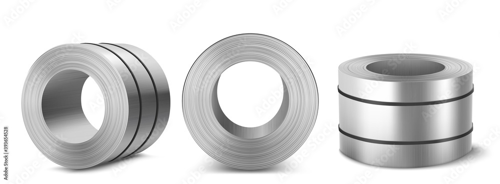 Tableau sur toile Steel sheet roll, stainless construction tape coil isolated on white background
