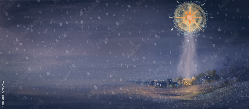 Tableau sur toile Merry Christmas. Bethlehem. Watercolor greeting card