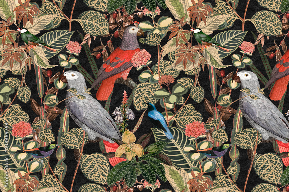 Tableau sur toile Bird pattern background jungle illustration