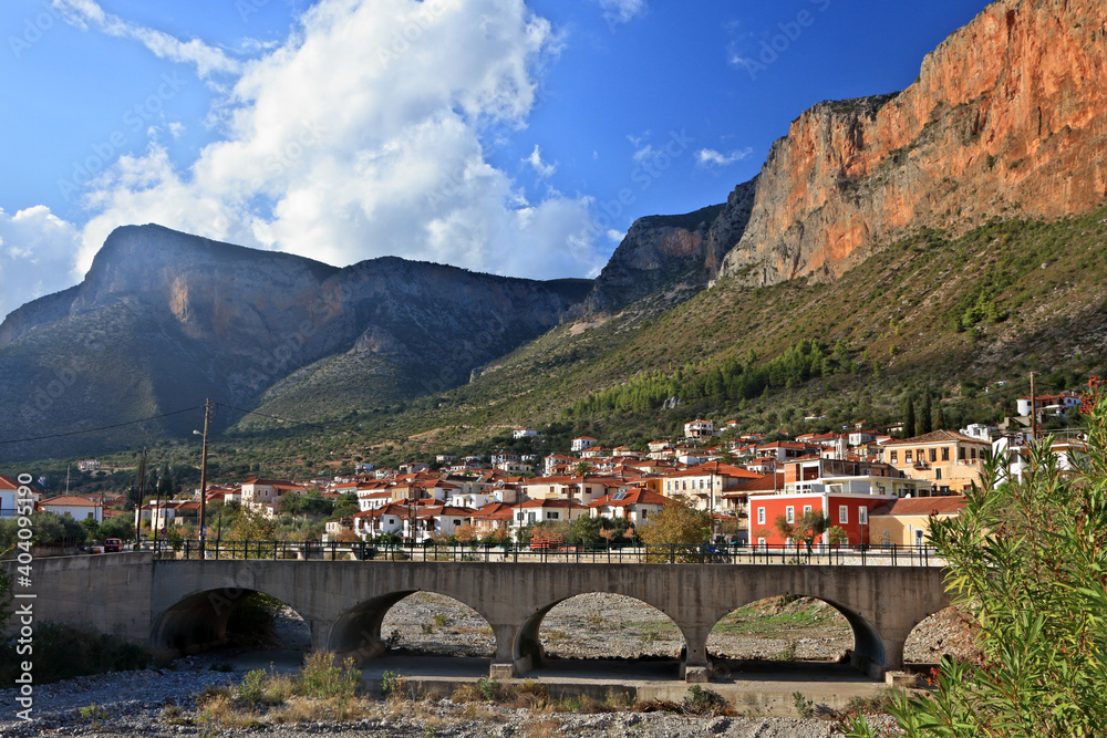 Tableau sur toile Leonidio village, an old, picturesque traditional village in Arcadia region, Peloponnese, Greece, Europe