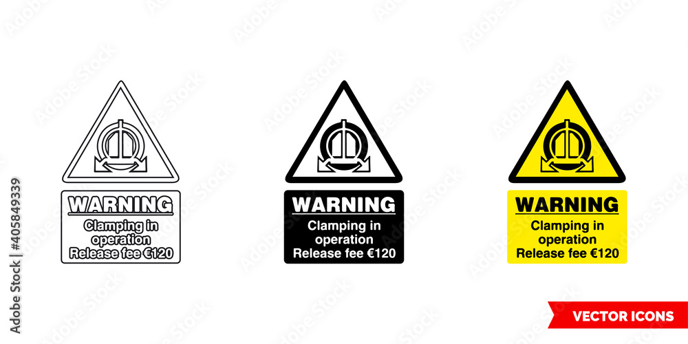 Tableau sur toile Warning clamping in operation release fee 120 warning sign icon of 3 types color, black and white, outline