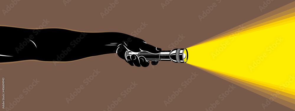 Tableau sur toile Hand with flashlight vector concept trendy illustration, with copy space for text message, highlighting searching and discovering