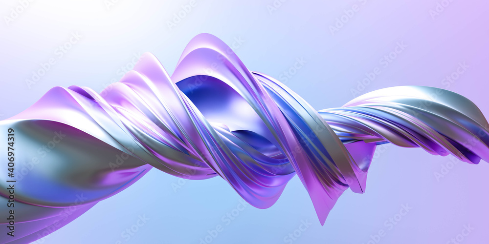 Tableau sur toile colourful twisted shape with metallic surface 3d render illustration