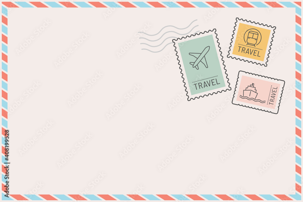 Tableau sur toile Stamped postcard frame with travel theme vector