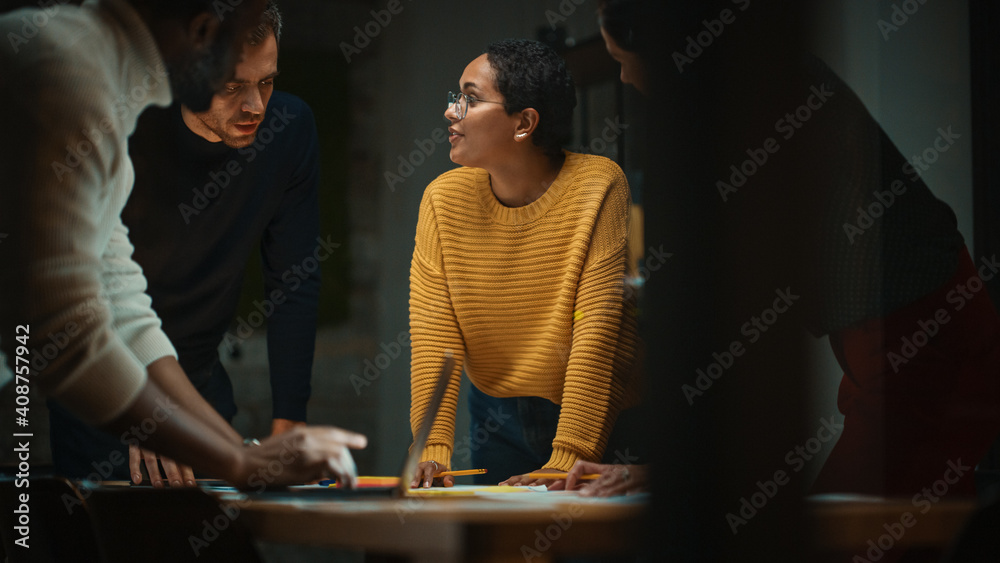 Tableau sur toile Diverse Multiethnic Team are Having a Conversation in a Meeting Room Behind Glass Walls in a Creative Office