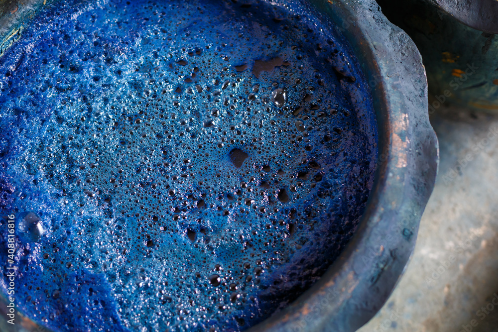Tableau sur toile indigo color in clay pot for tie batik dyeing