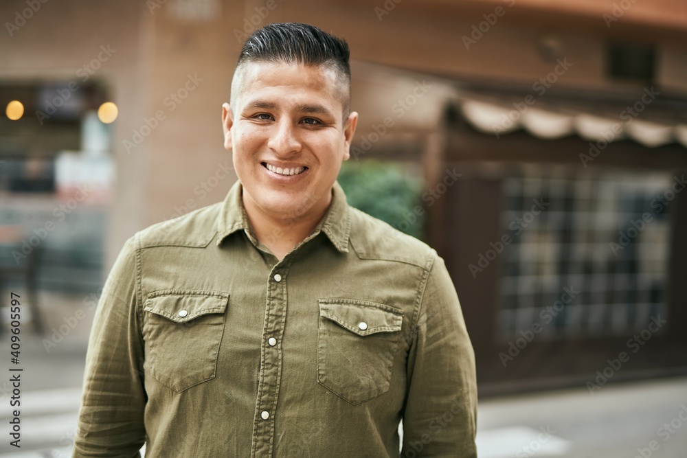Tableau sur toile Young latin man smiling happy standing at the city.