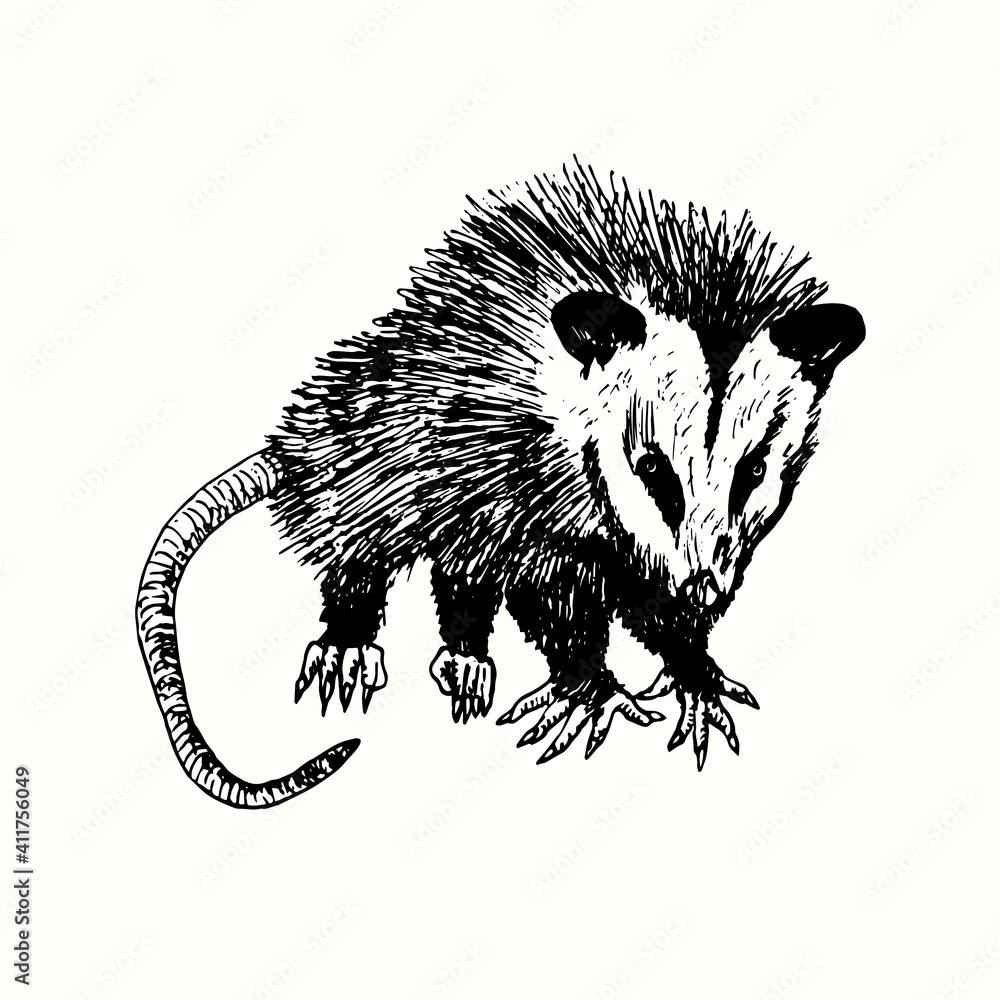 Tableau sur toile Hand drawn Virginia opossum (Didelphis virginiana), commonly known as the North American opossum