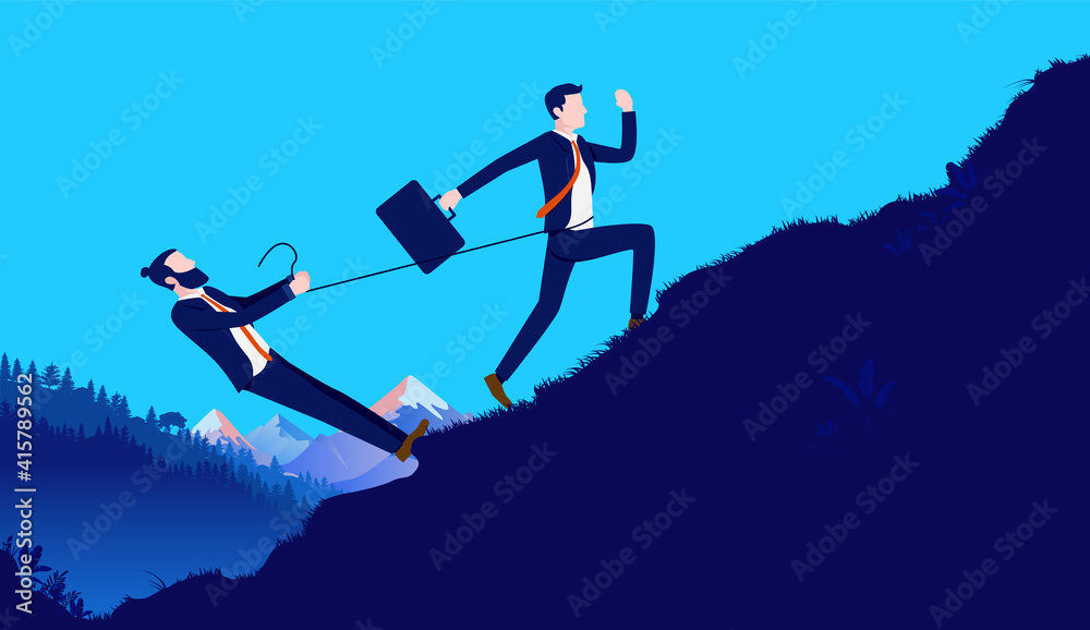 Tableau sur toile Business disagreement - Businessman holding back colleague with tight rope, restraining him from doing work