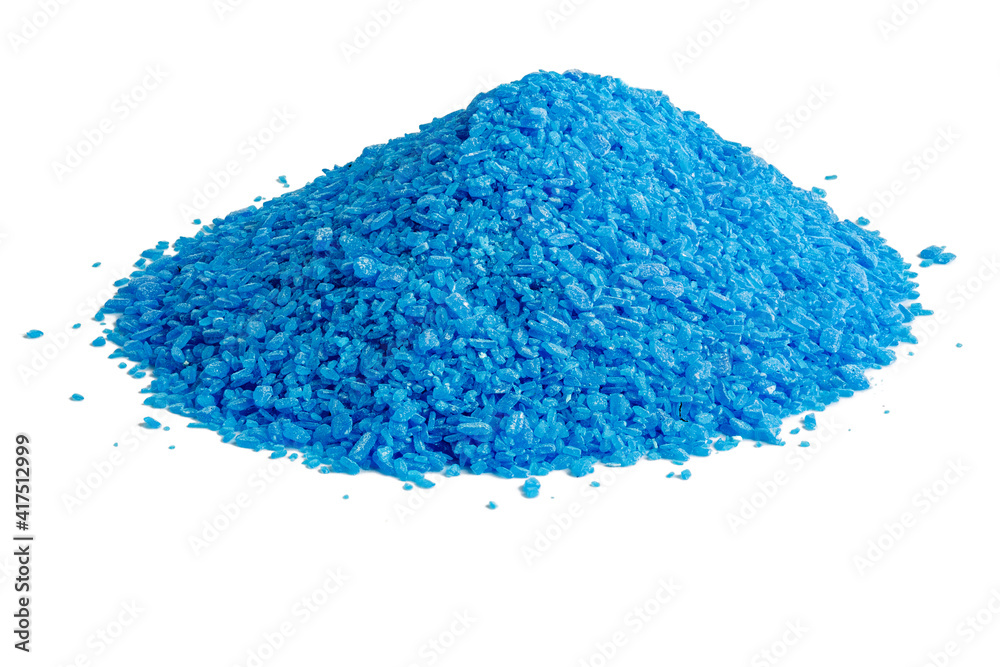 Tableau sur toile pile of blue copper sulfate granules - close-up isolated on white background