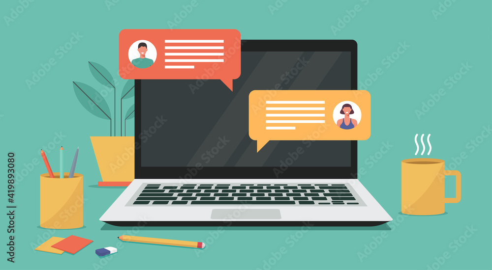 Tableau sur toile online chatting on laptop computer concept, man and woman connecting together an