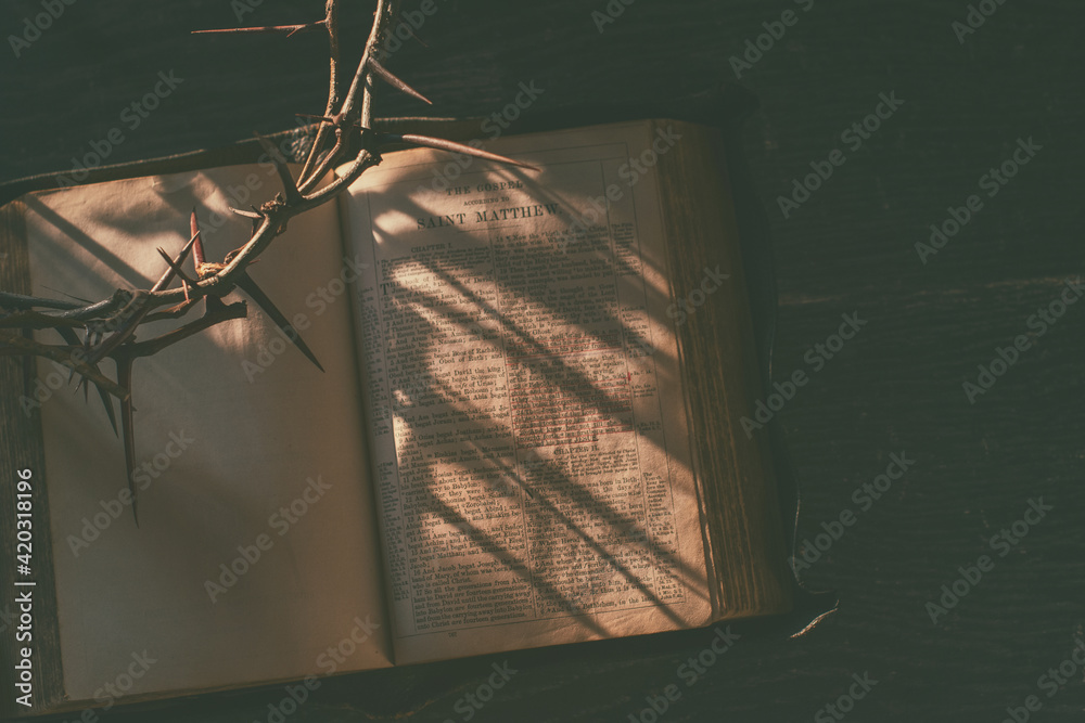 Tableau sur toile Image of an open bible at epistle after Matthew