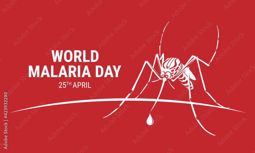 Tableau sur toile world malaria day with white Mosquitoes drinking drop blood sign on red backgrou