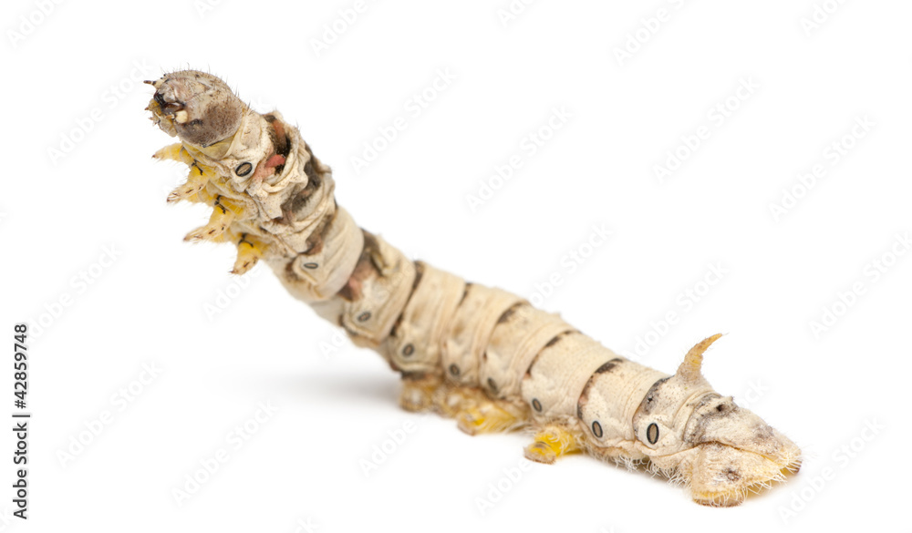 Tableau sur toile Silkworm larvae, Bombyx mori, against white background