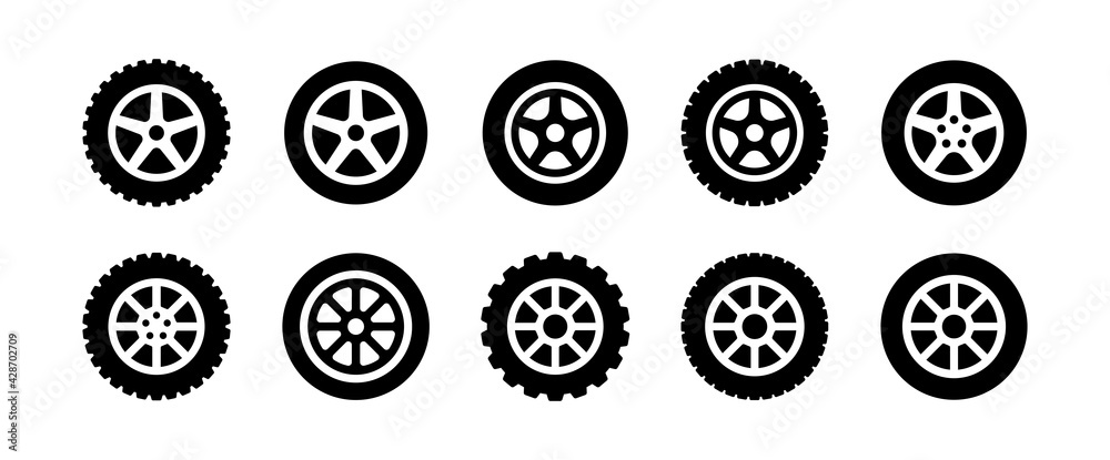 Tableau sur toile Black rubber wheel tire set icon illustration.