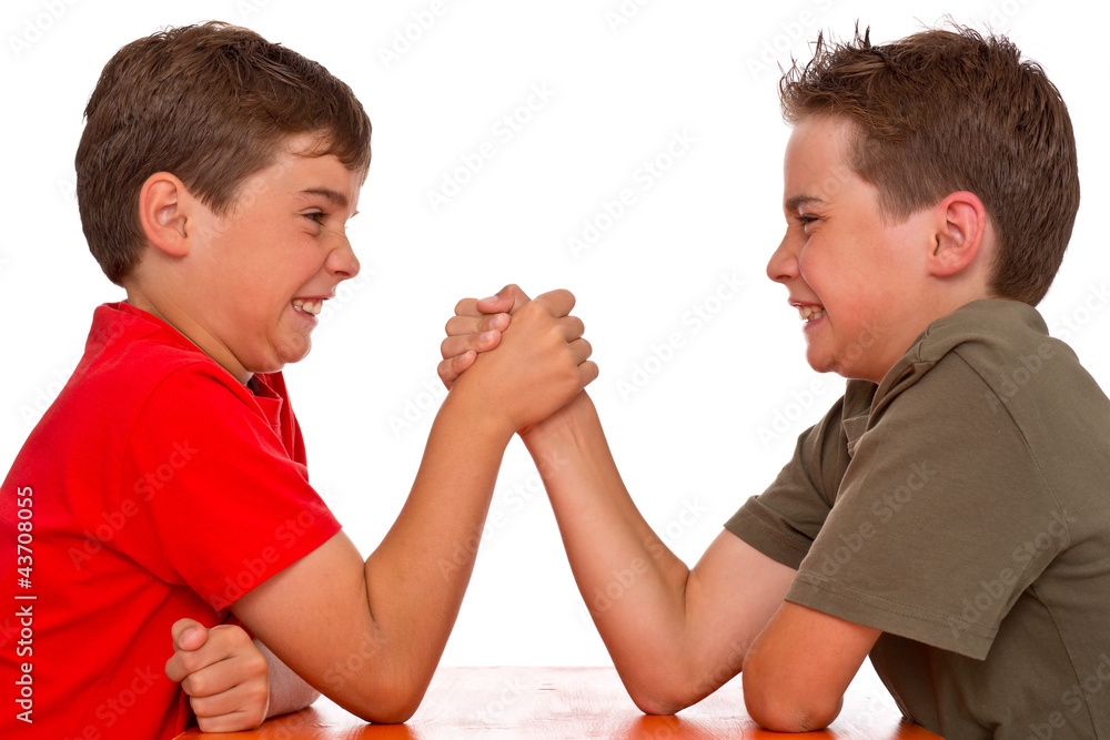 Tableau sur toile Armdrücken - Kraftprobe zwischen zwei Jungen - Rivalen