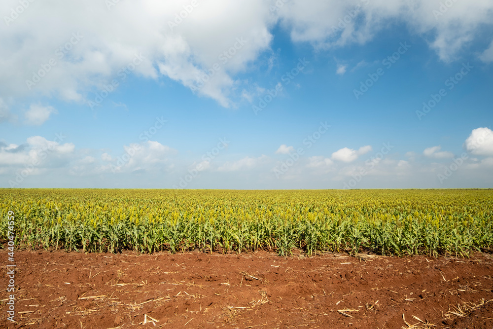 Tableau sur toile Sorghum plantation on a sunny day in Brazil