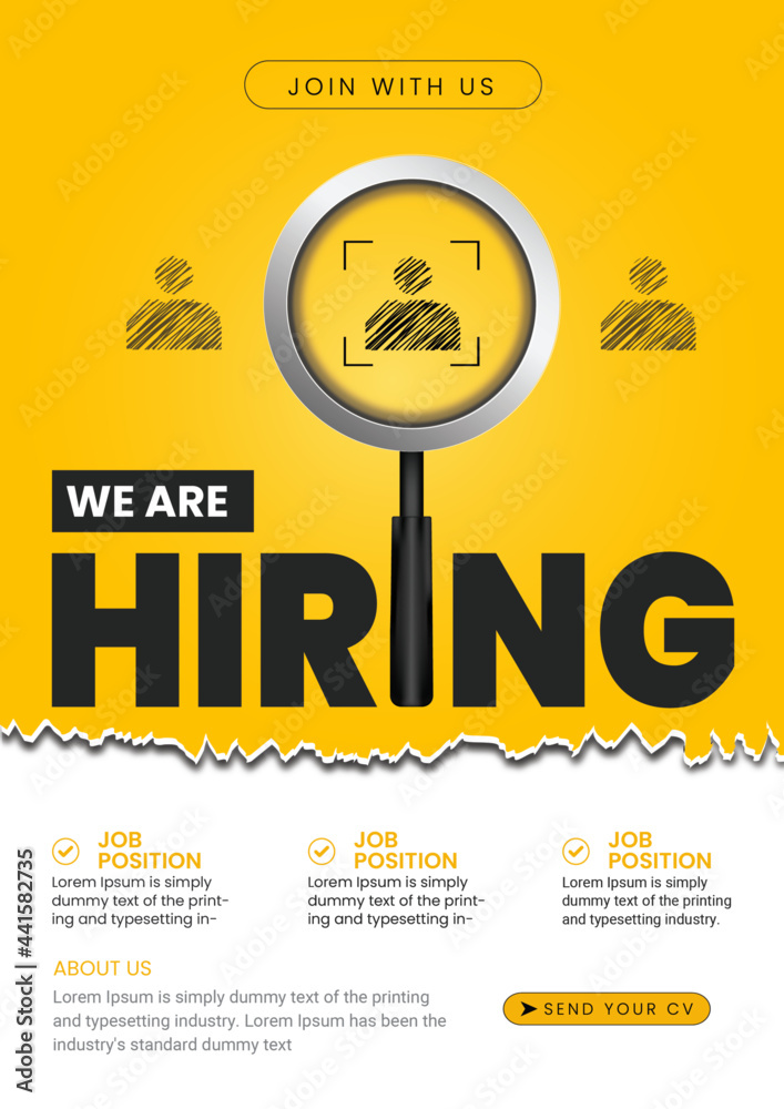 Tableau sur toile Hiring Job flyer, We are hiring Job advertisement flyer template, Vector