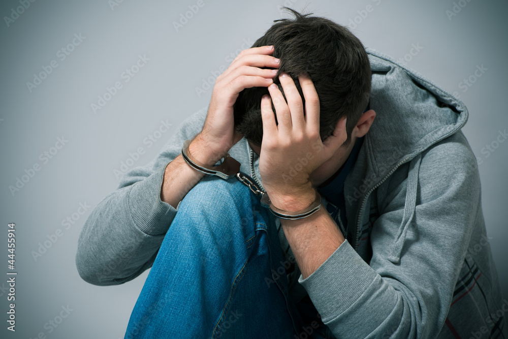Tableau sur toile Arrested teenager with handcuffs on his hands