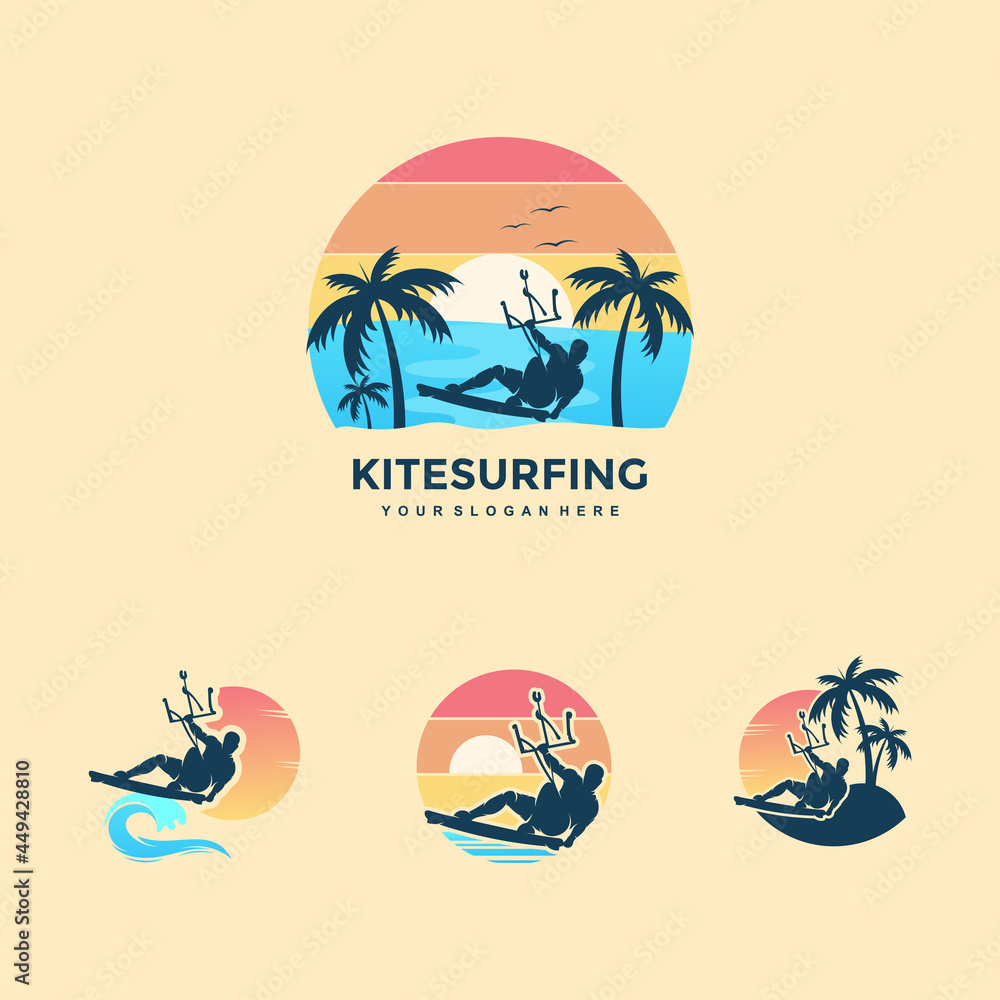 Tableau sur toile Kite surfing design concept, illustration silhouette, vector