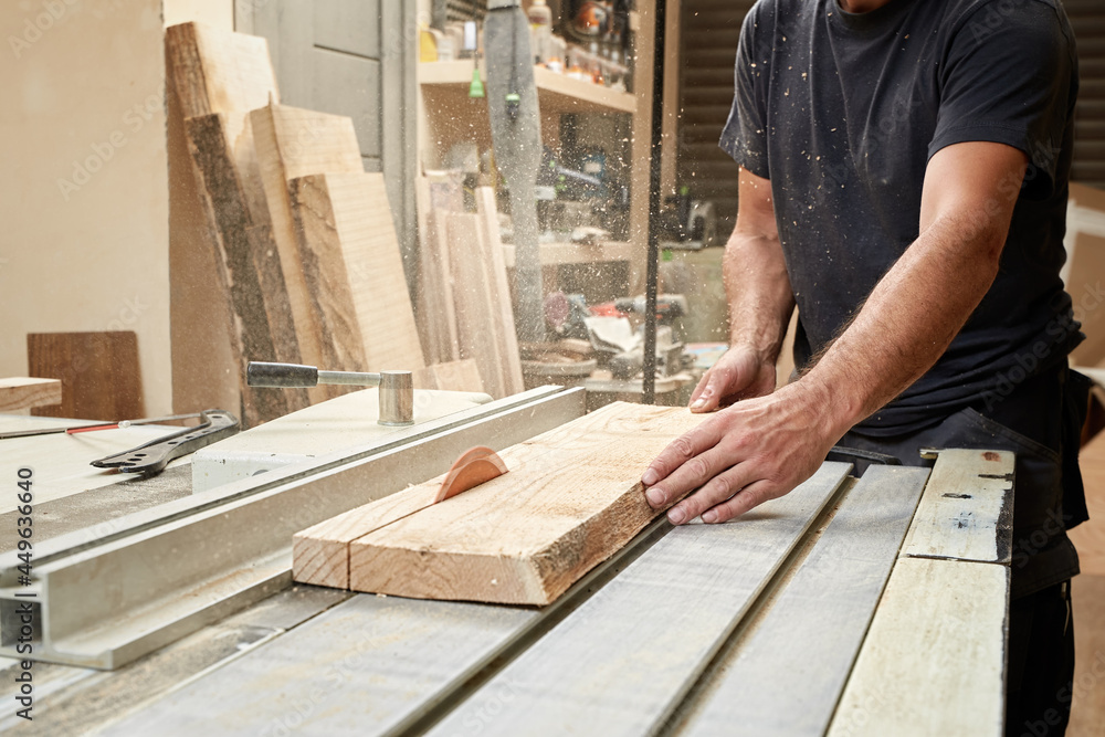 A carpenter is working on a circular saw.