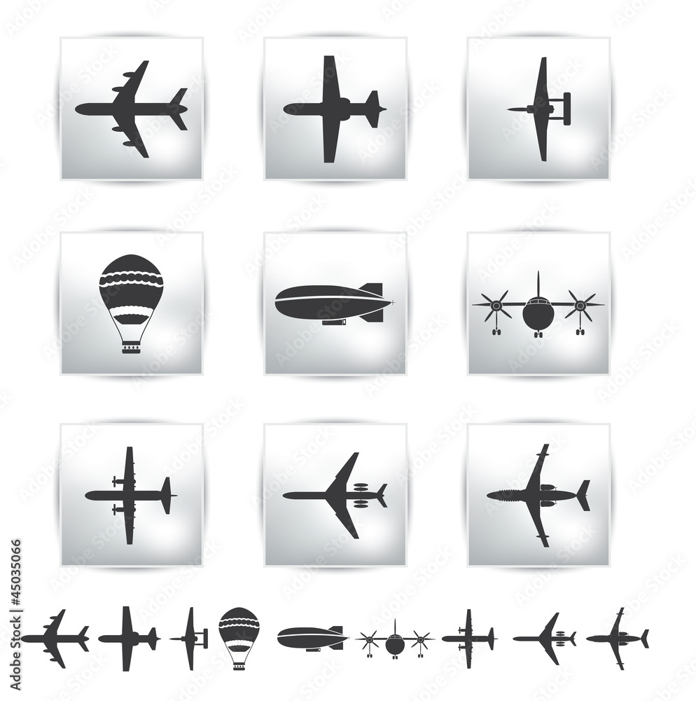 Tableau sur toile Vector collection different airplane and gray silhouettes. Set