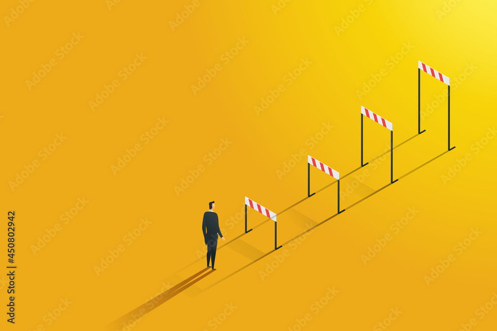 Tableau sur toile Businessman look at higher career barriers ambitious to overcome