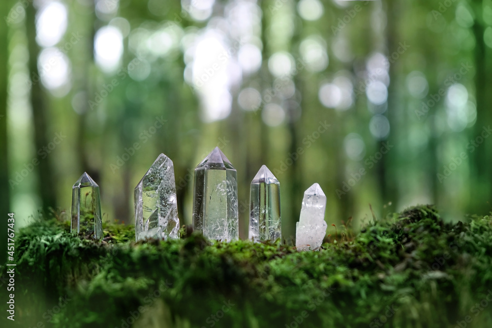 Tableau sur toile Clear crystals in mysterious forest, natural green background