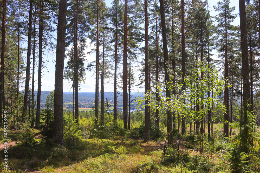 Tableau sur toile View through sparse forest from Kramstaleden (Kramsta Trail) in Järvsö