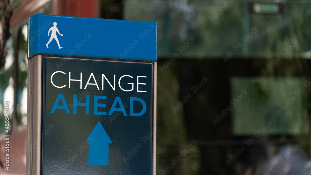 Tableau sur toile Change Ahead with Arrow sign in a busy commuter city center
