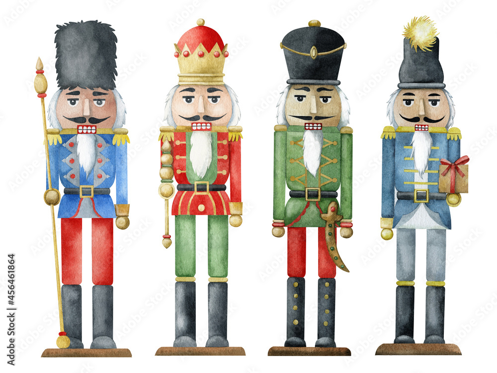 Tableau sur toile A watercolor set of four hand-drawn nutcracker soldiers
