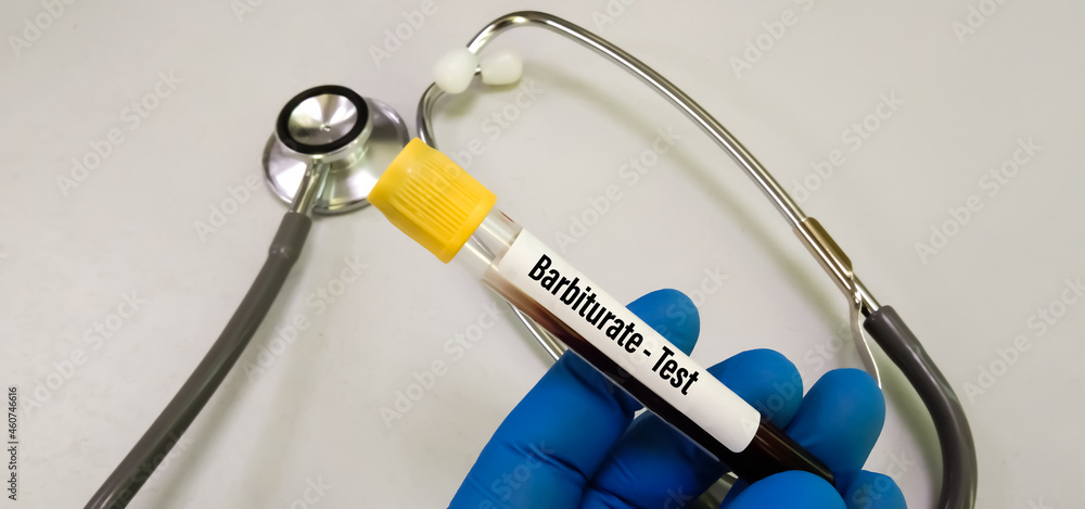 Tableau sur toile Blood sample tube for Barbiturate and Phenytoin test at medical laboratory